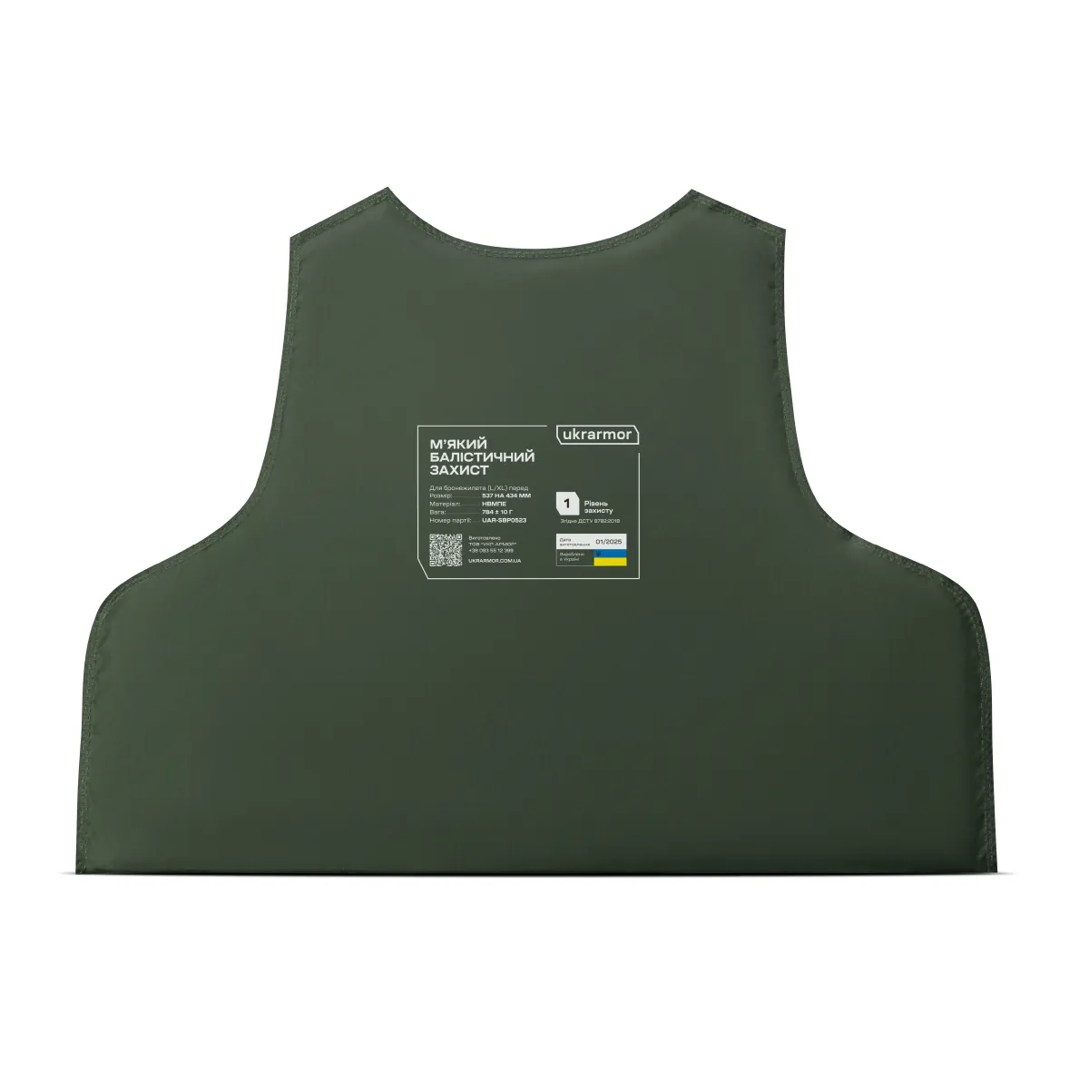Балістичні пакети – 1-го класу захисту, тобто вони забезпечать захист від уражень уламками, рикошетів та пострілів кулі 9 × 18 мм. Makarov та Luger, при вазі всього 784 г передній та 1034 г задній (вага комплекту “перед та зад” буде важити відповідно 1818 г)