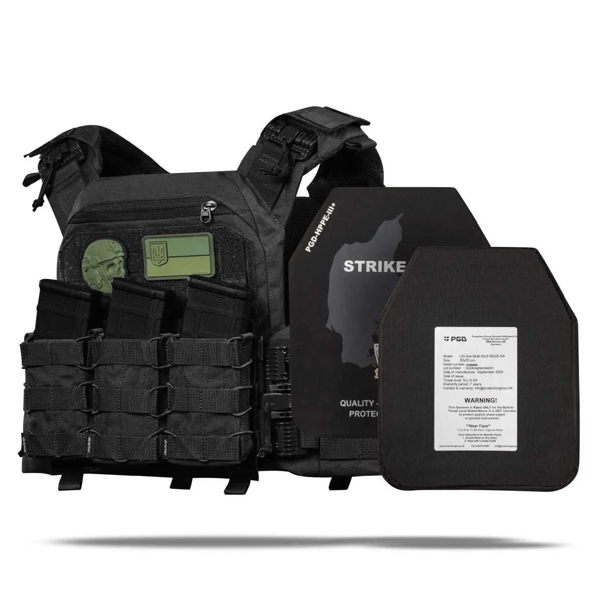 Бронепластини виготовляються данською компанією Protection Group Denmark за найвищими стандартами якості та лише з сертифікованого НВМПЕ від Honeywell та Dyneema®.