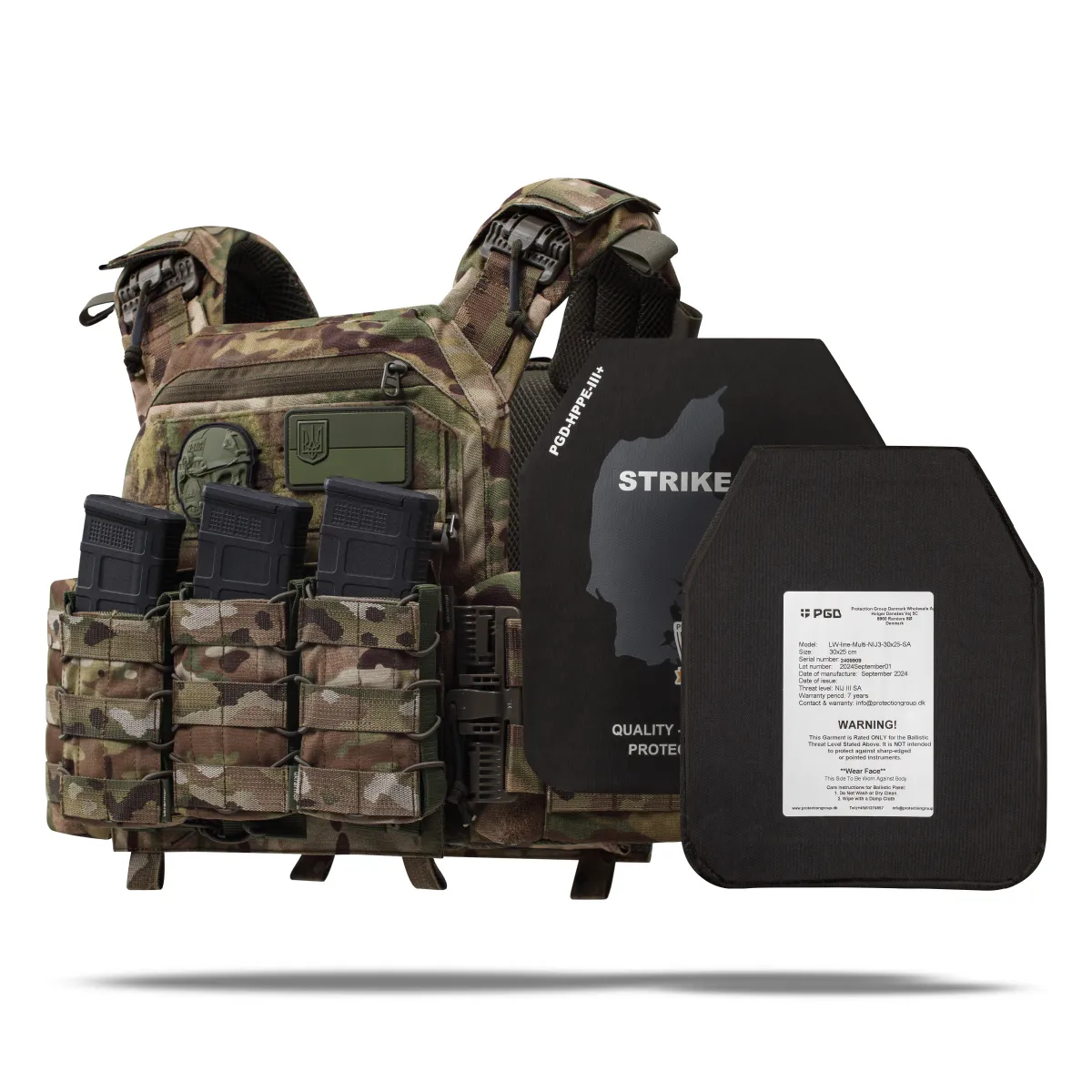 Бронепластини виготовляються данською компанією Protection Group Denmark за найвищими стандартами якості та лише з сертифікованого НВМПЕ від Honeywell та Dyneema®.
