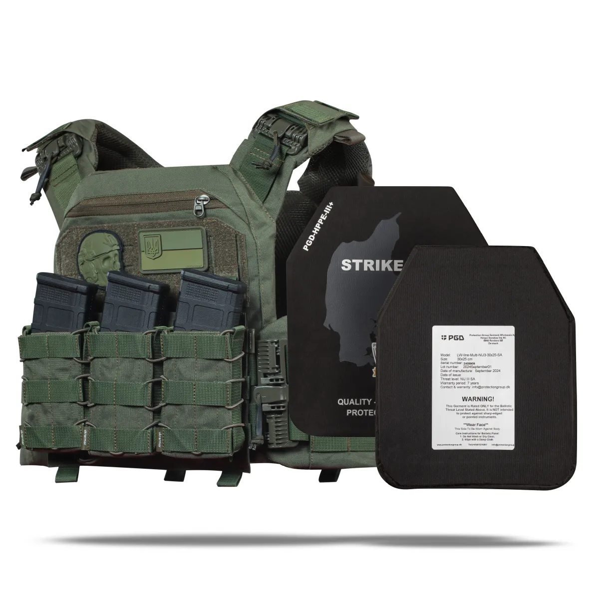 Бронепластини виготовляються данською компанією Protection Group Denmark за найвищими стандартами якості та лише з сертифікованого НВМПЕ від Honeywell та Dyneema®.