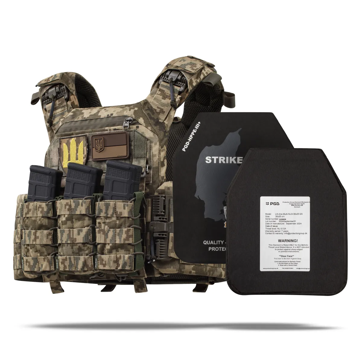 Бронепластини виготовляються данською компанією Protection Group Denmark за найвищими стандартами якості та лише з сертифікованого НВМПЕ від Honeywell та Dyneema®.