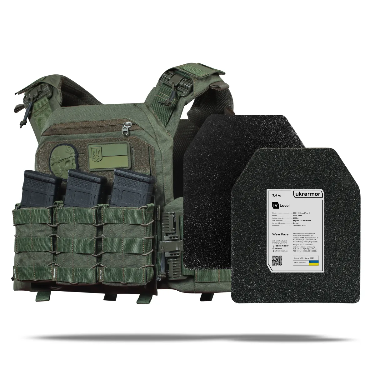 – 2 посилені бронеплити 4-го класу (вага 3.4 кг, сталь Armox Advance + полімерний антирикошет);