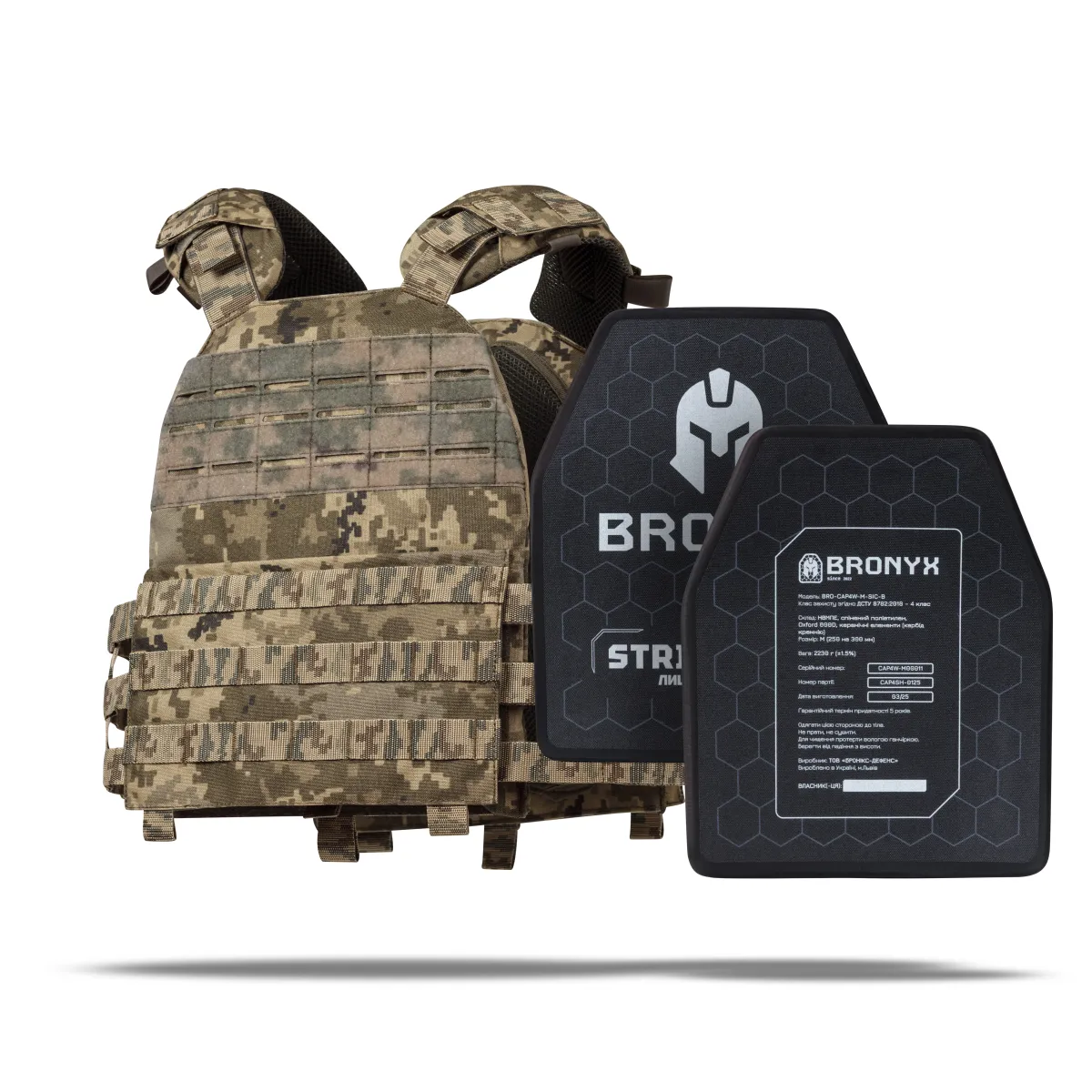 – 2 бронеплити 4 класу Bronyx (вага 2.2 кг, матеріал кераміка карбід кремнію (SiC);