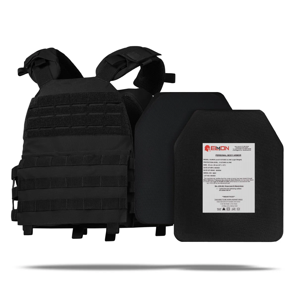Надійний, легкий та ергономічний бронежилет, що складається з двох керамічних бронепластин найвищого рівня захисту (виготовлені у Греції і сертифіковані європейською лабораторією) та компактної плитоноски M.V.P. з системою швидкого скидання, яка гарантує зручність у носінні та максимальну свободу рухів.
