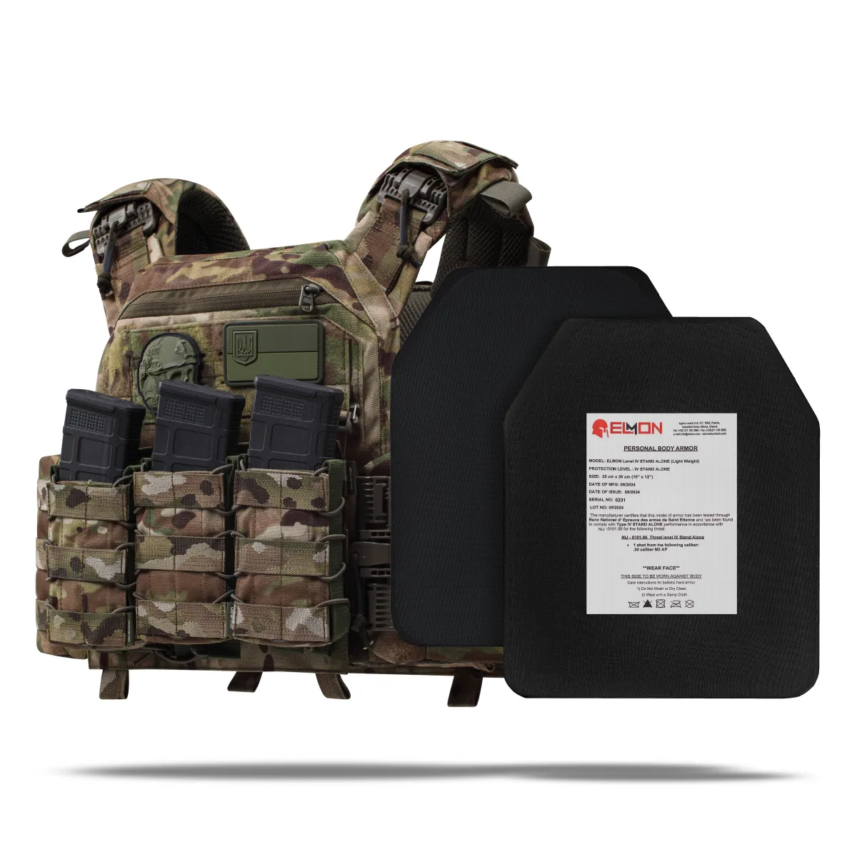 - Комплектація 2 бронеплити (матеріал кераміка карбід кремнію SiC), плитоноска покращена (PRO), копія протоколу відстрілу