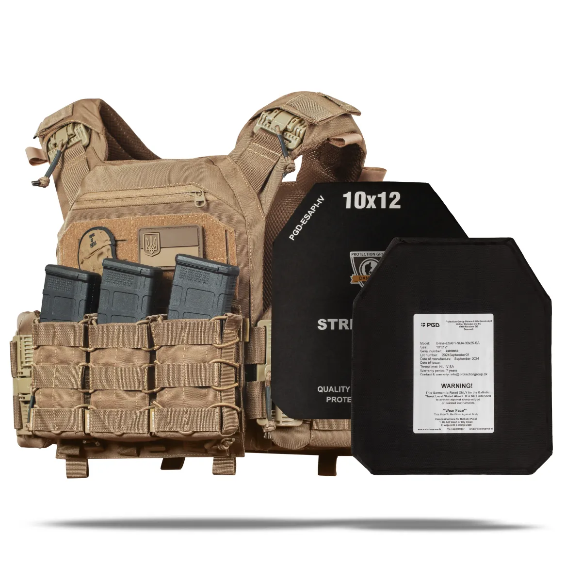 Створений для найскладніших завдань, міцний та надійний бронежилет, що забезпечить вас найвищим у світі класом захисту (Level IV NIJ 0101.06, аналог 6 класу по ДСТУ) при вазі всього 6.4 кг. Комплект складається з двох керамічних бронеплит (виготовлені у Данії та протестовані у лабораторії США) та покращеної плитоноски PPO з системою швидкого скидання з супер м’якими підплічниками та матеріалу CORDURA 1000.