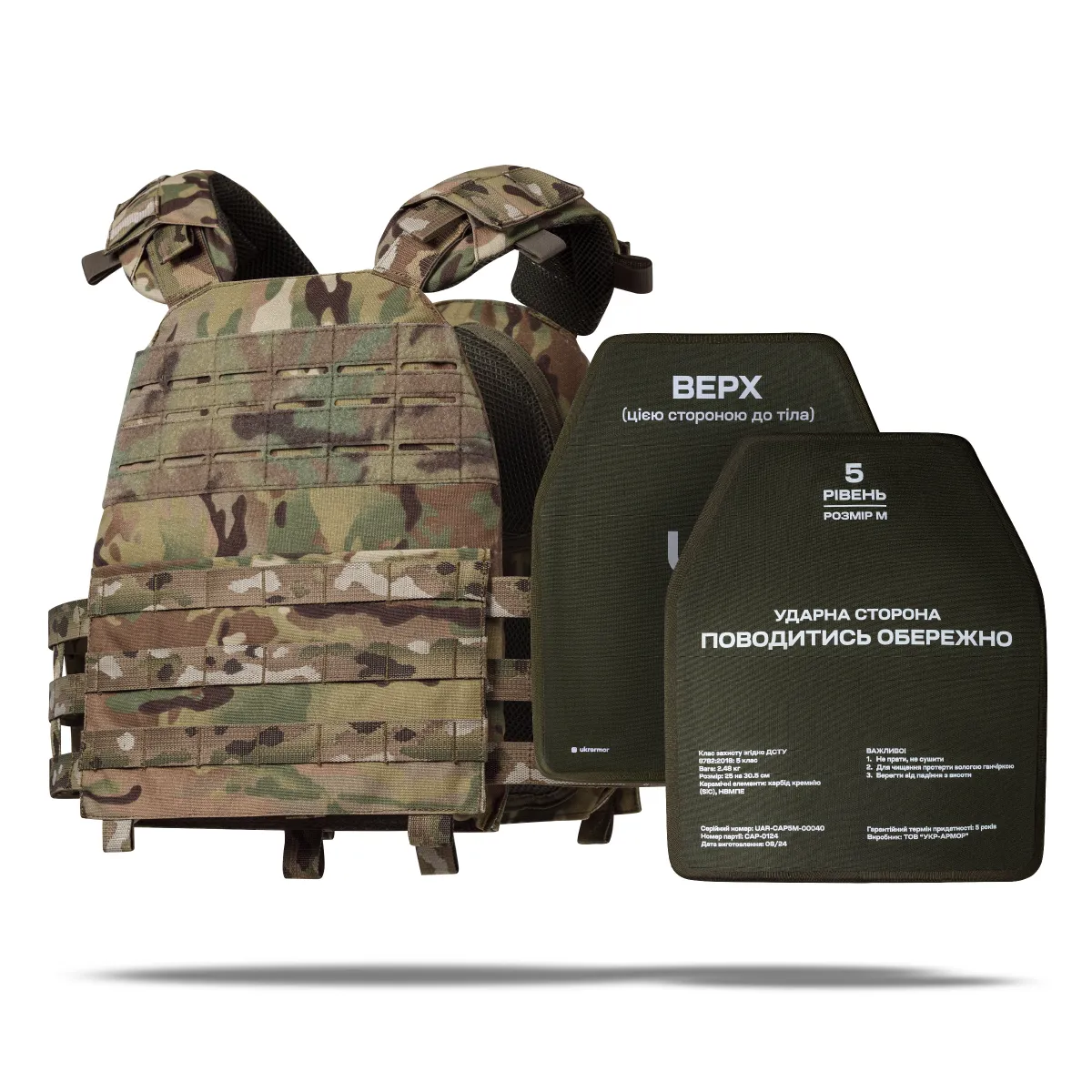 - Комплектація 2 бронеплити 5-го класу (вага 2.48 кг), плитоноска M.V.P., копія протоколу відстрілу