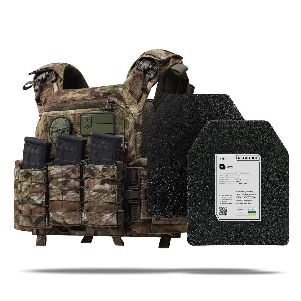 - Комплектація 2 бронеплити 5-го класу (вага 4.1 кг, шведська бронесталь), плитоноска покращена (PRO).