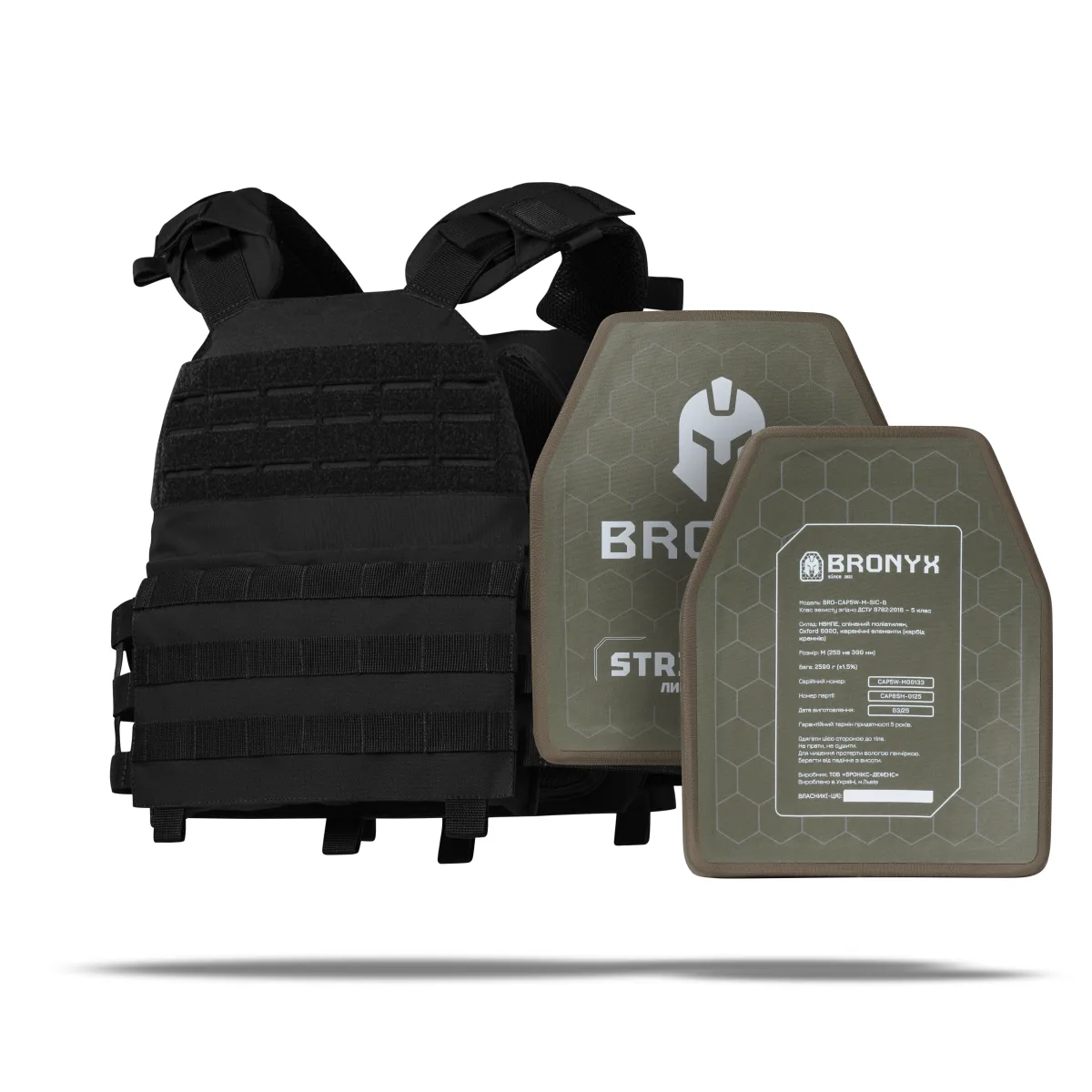 – 2 бронеплити 5 класу Bronyx (вага 2.59 кг, матеріал кераміка карбід кремнію (SiC);