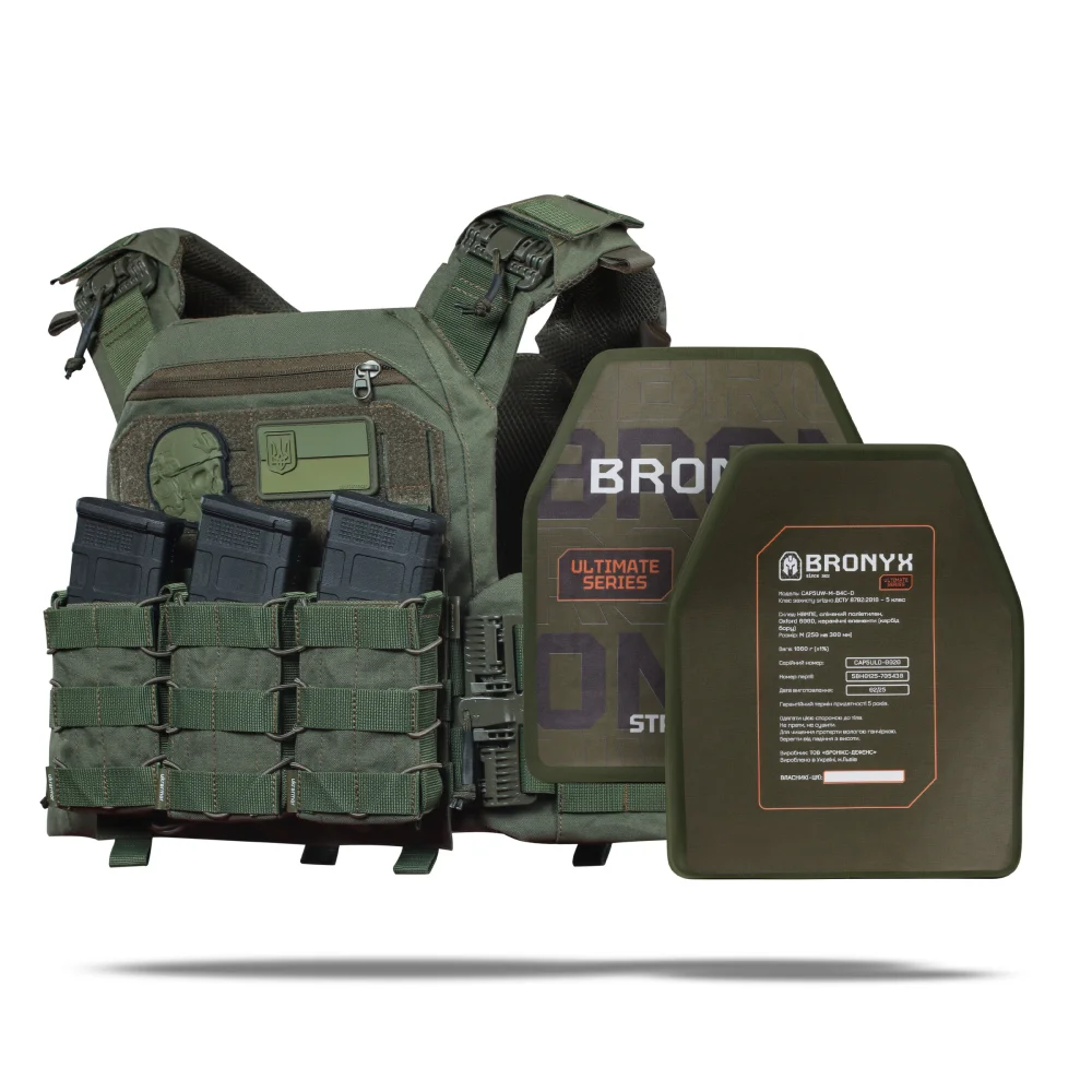 – 2 бронеплити 5 класу Ultimate Bronyx (вага 1.86 кг, матеріал кераміка карбід бору (B4C);