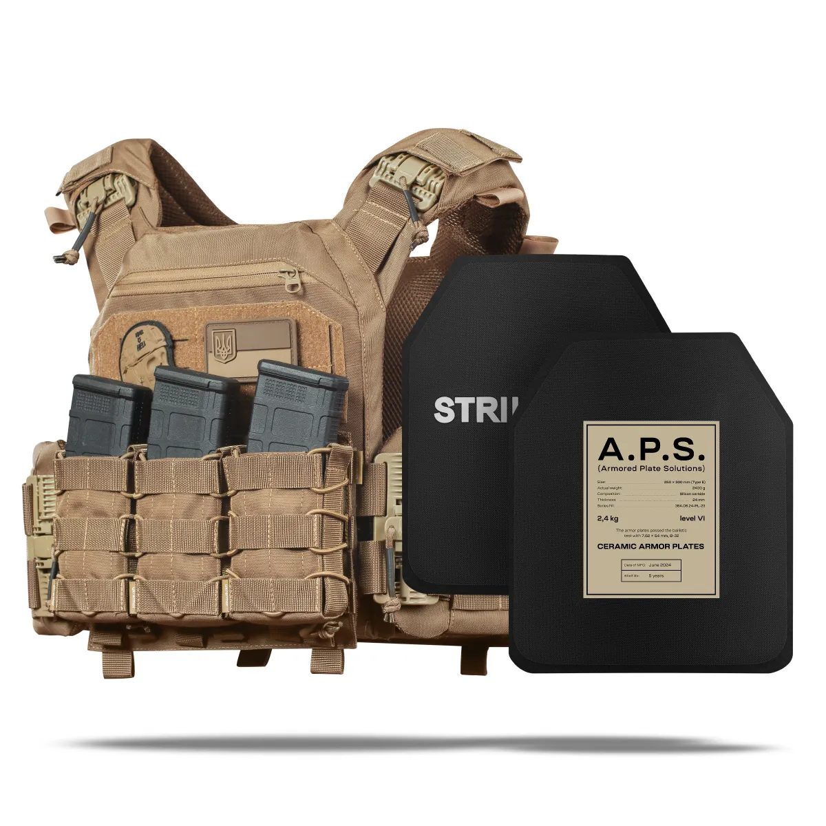 На відміну від китайських керамічних аналогів, при виготовленні бронеплит A.P.S. основним матеріалом був саме композит карбіду кремнію – а це, на хвилиночку, один із найлегших і одночасно найміцніших матеріалів у світі, що дозволяє по-максимуму зменшити загальну вагу та сприяє більшій ергономіці й комфорту відносно тіла.