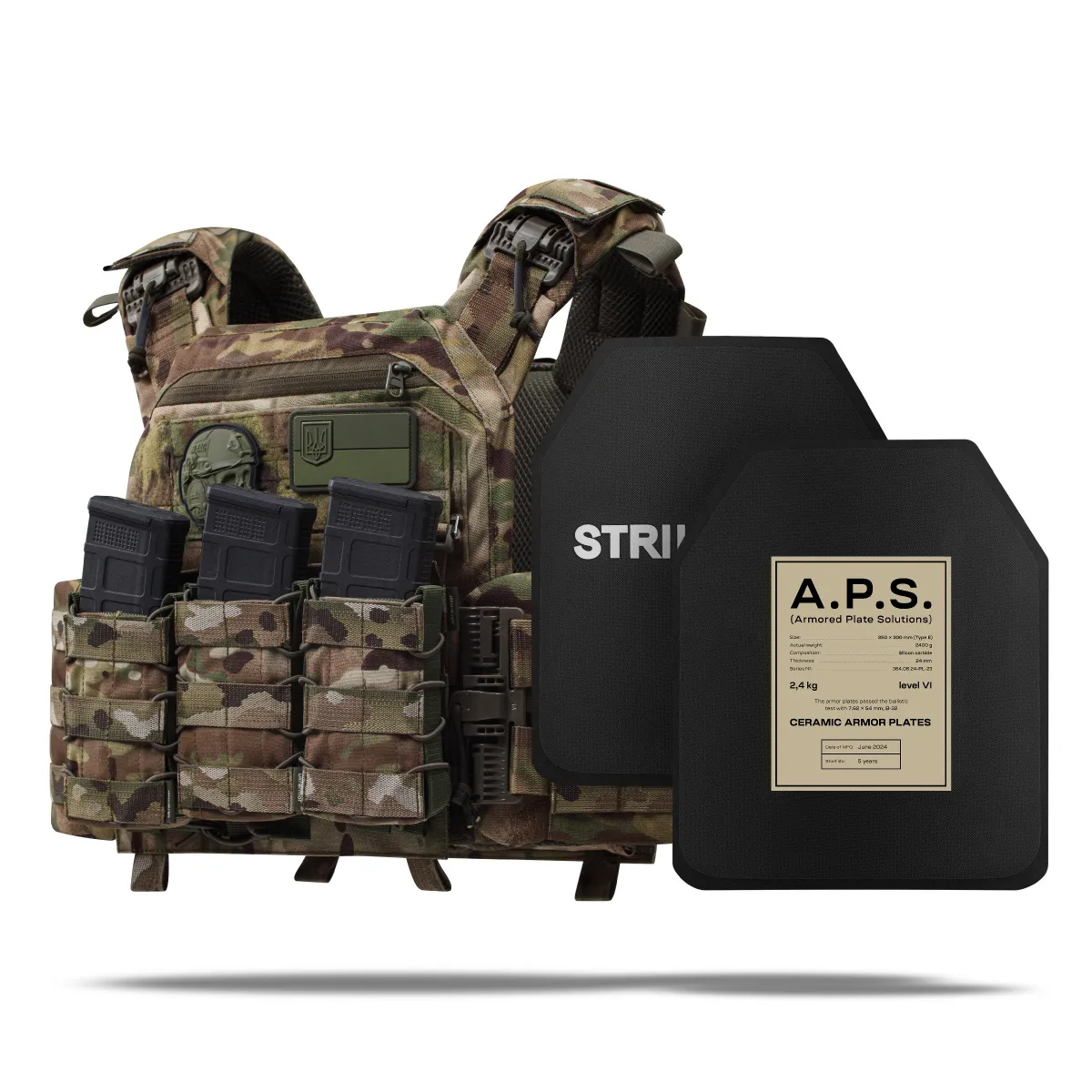 - Комплектація 2 бронеплити 6-го класу(вага 2.4 кг, матеріал композит кераміки карбіду кремнію SIC), плитоноска покращена PRO