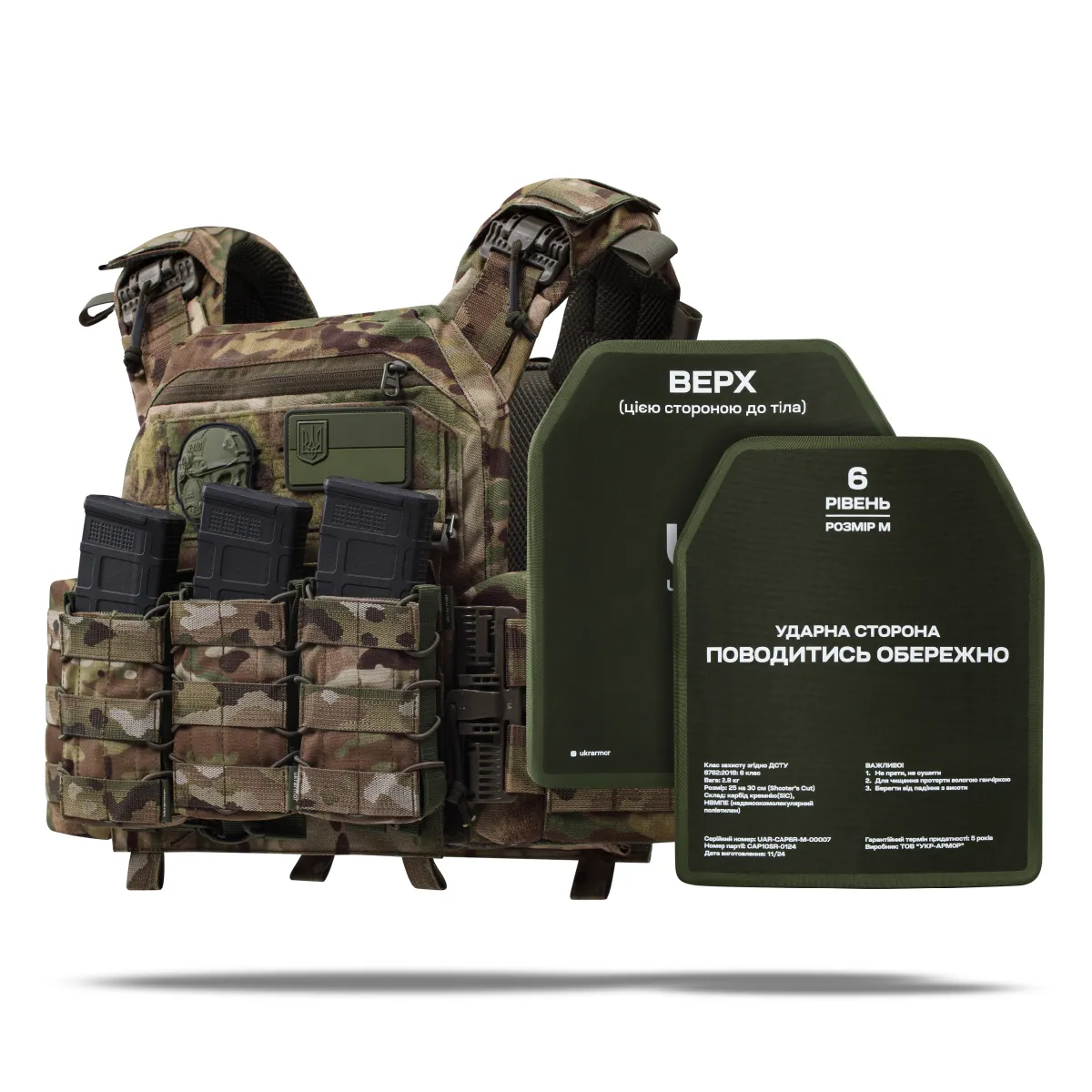 – 2 бронеплити 6-го класу (вага 2.9 кг, матеріал кераміка карбід кремнію SiC);