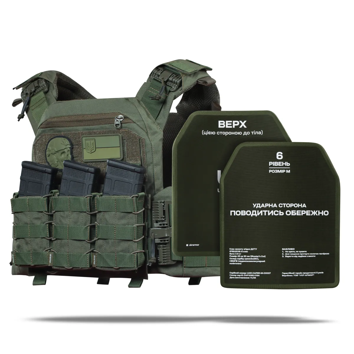 – 2 бронеплити 6-го класу (вага 2.9 кг, матеріал кераміка карбід кремнію SiC);