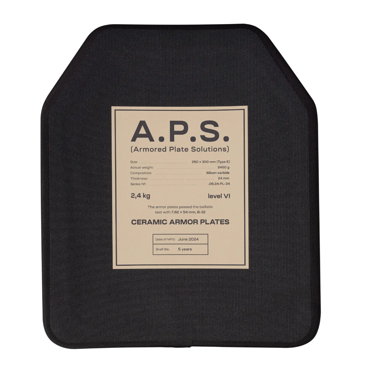 Керамічна бронеплита 6 класу захисту A.P.S. (Armored Plate Solutions) – це якісна, міцна та найбільш надійна з наявних типів бронезахисту згідно з українськими та світовими стандартами. Легка вага та ергономічна форма забезпечують квінтесенцію комфорту у повсякденному використанні.