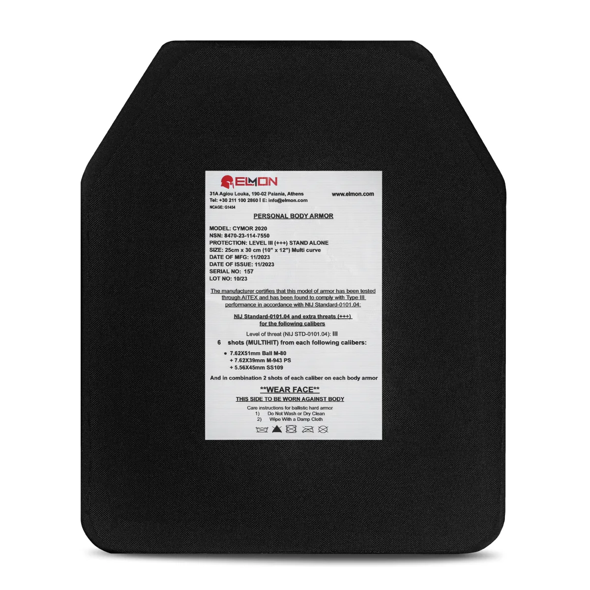 Надлегкі та міцні керамічні бронеплити здатні захистити Вас від шести влучань кулею 7.62 × 51 мм. та 7.62 × 39 мм. і найбільш розповсюдженого ушкодження – ураження уламками різної величини, шрапнелі та рикошетів. Бронепластини сертифіковані Європейською лабораторією та відповідають Level III+++ по NIJ Standard-0101.04 (США) .