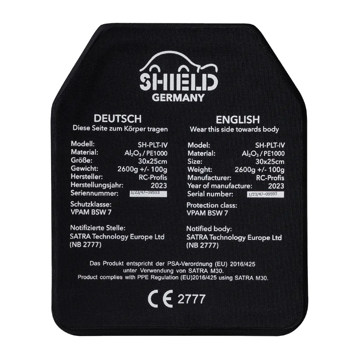 Бронеплита Shield Germany SK4 відповідають 3-м стандартам захисту – українському (ДСТУ), німецькому SK4 (VPAM BSW7) та американському (NIJ IV).