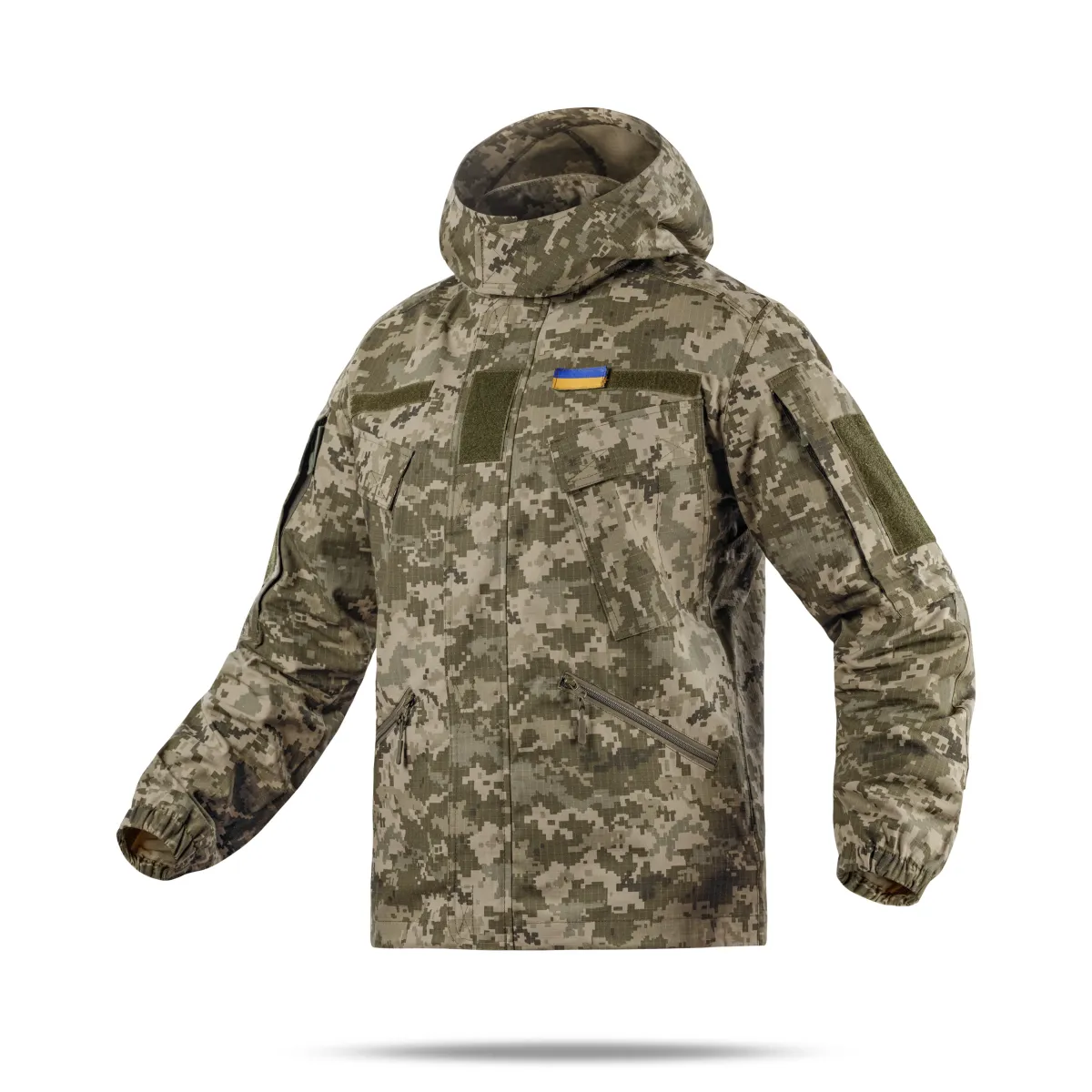 Тактична куртка з капюшоном стане незамінним елементом гардеробу для представників збройних сил та правоохоронців, адже завдяки оригінальному камуфляжному забарвленню та матовій поверхні, здатна забезпечити ідеальне маскування у лісовій, степовій та гірській місцевості.