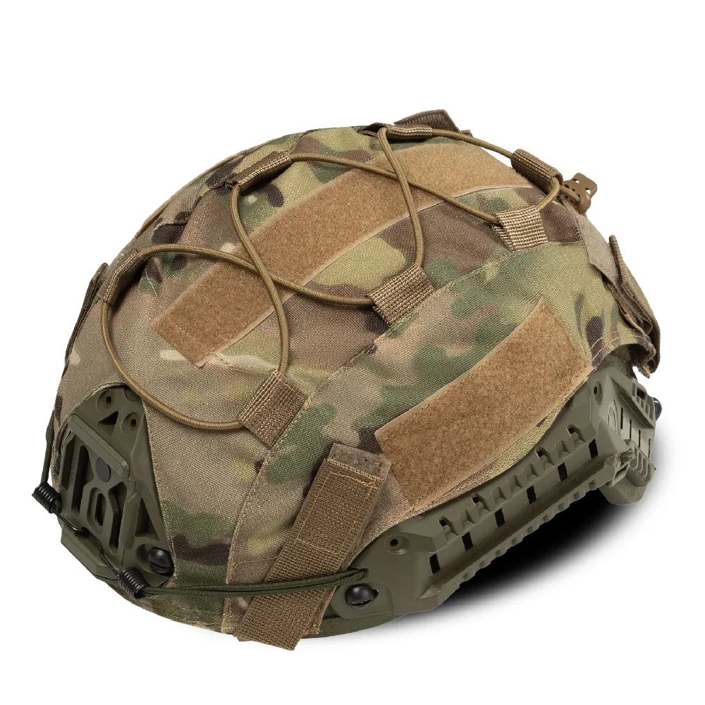 Кавер можна легко прикріпити до шолома за допомогою велкро-панелей (липучок), які розташовані з боків, ззаду та зверху. Ці панелі призначені для кріплення ідентифікаторів, маячків і різноманітних шевронів. На чохлі також є спеціальні стяжки, що дозволяють зручно закріпити шнури або додатковий камуфляж.