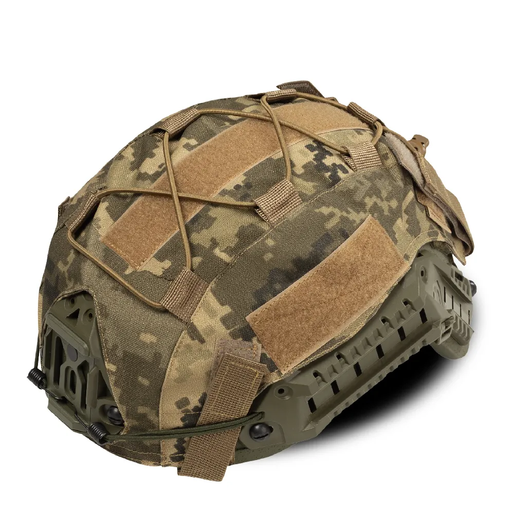 Кавер можна легко прикріпити до шолома за допомогою велкро-панелей (липучок), які розташовані з боків, ззаду та зверху. Ці панелі призначені для кріплення ідентифікаторів, маячків і різноманітних шевронів. На чохлі також є спеціальні стяжки, що дозволяють зручно закріпити шнури або додатковий камуфляж.