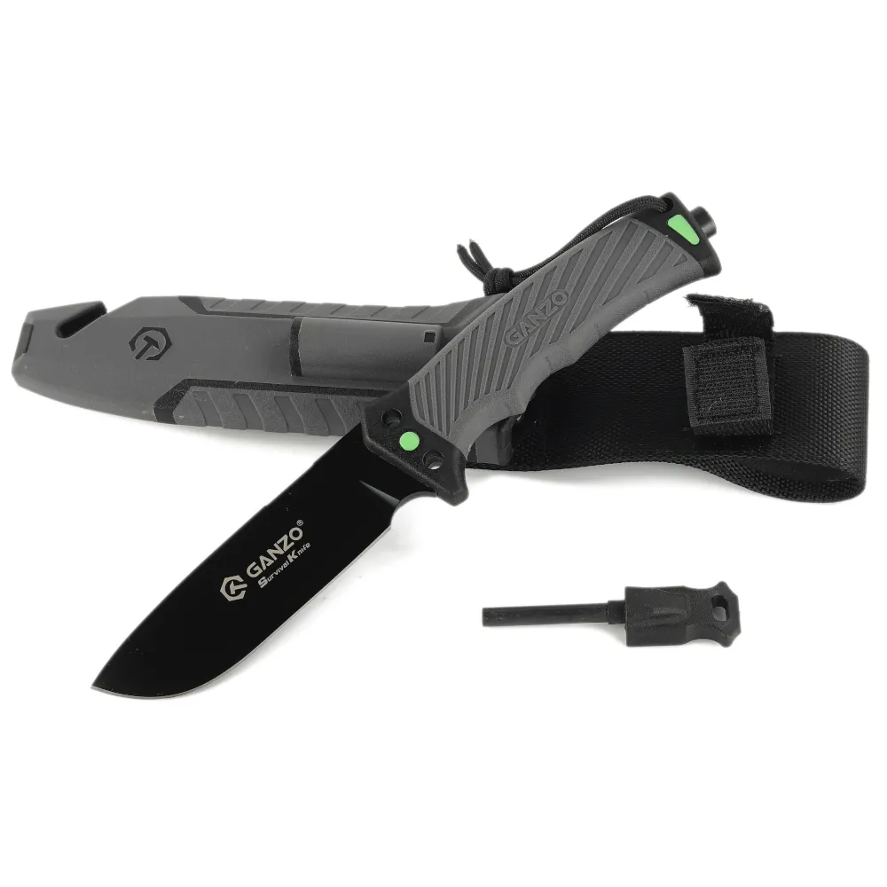У комплект з ножем входять фірмові чохли, які мають доповнення у вигляді невеликого кресала, стропоріза і компактної пластини, що виконує функцію Точила, якщо під рукою немає повноцінного точильного каменю. Модель Ganzo G8012V2 має отвір під темляк і продається разом з паракордом. Це синтетична мотузка з особливим плетінням, яке підвищує міцність матеріалу. Темляк можна використовувати як додатковий варіант для фіксації вироби на поясі або сумці.