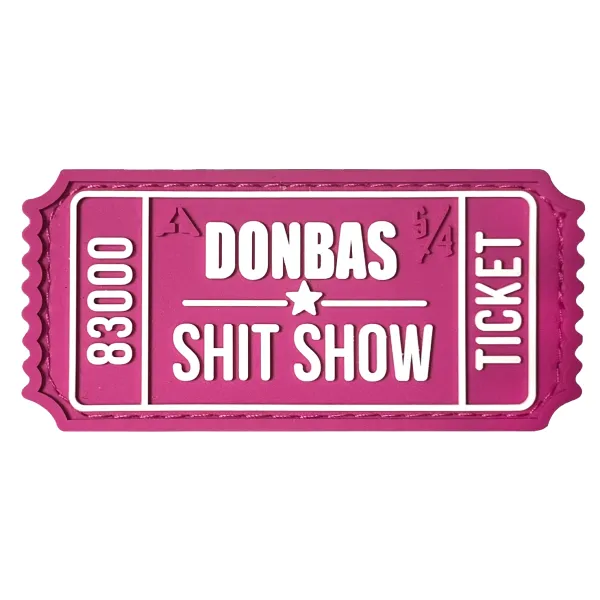 Патч (шеврон) «Білет Donbas Shit Show V1» від А.Т.А.К.А. x SANCHI. М’який ПВХ пластик. Рожево-білий