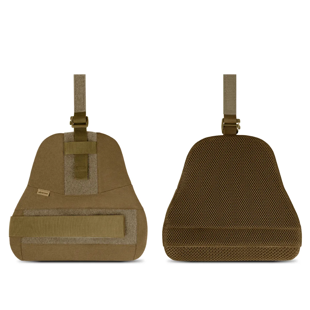 Щодо дискомфорту, вірніше, його відсутності: при розробці плечового захисту нами було приділено чимало уваги створення максимально анатомічної форми виробу, яка не конфліктує з іншими елементами спорядження та не обмежує свободу рухів.