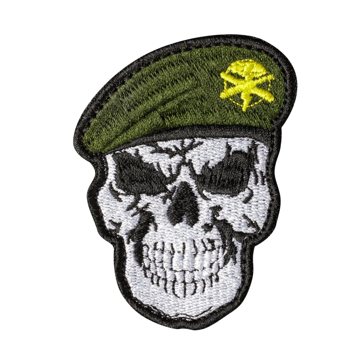 Шеврон (нашивка) Череп з беретом на липучці, 8 х 6 см. Олива