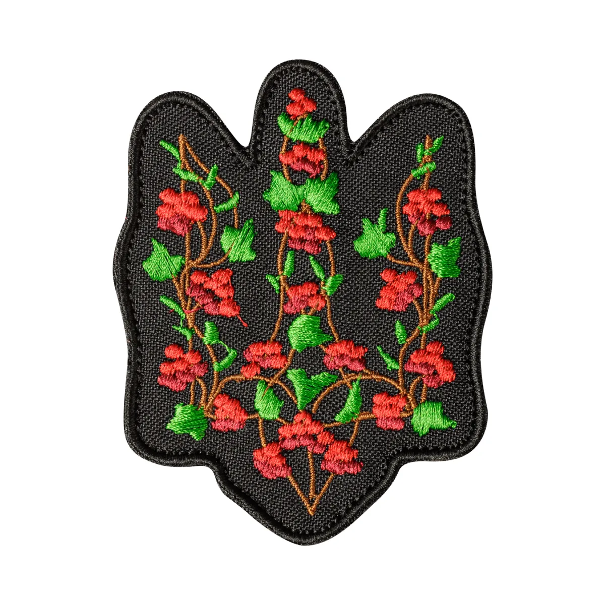 Шеврон Тризуб з калиною на липучці, 9.2 х 7 см. Червоно-чорний