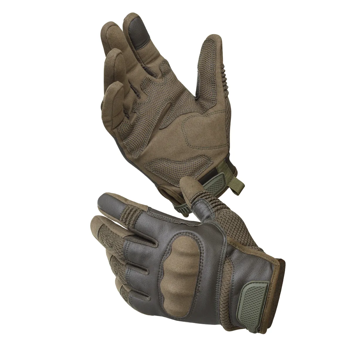 Тактичні рукавички Glotac, шкіряні. Посилені вставки на кісточках. Колір Олива