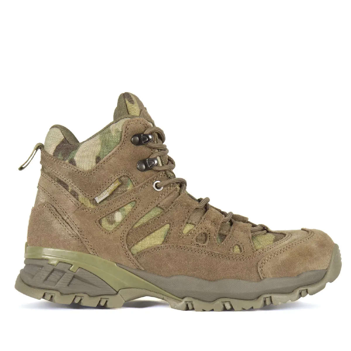 Висота черевика Мілтек, надійна система шнурівки й інтегрований в підошву супінатор забезпечують кращу фіксацію гомілкостопу й попередить його вивих під час пересування пересіченою місцевістю. Язичок має спеціальну конструкцію, яка попереджає потрапляння вологи всередину черевика навіть при дуже інтенсивних опадах.