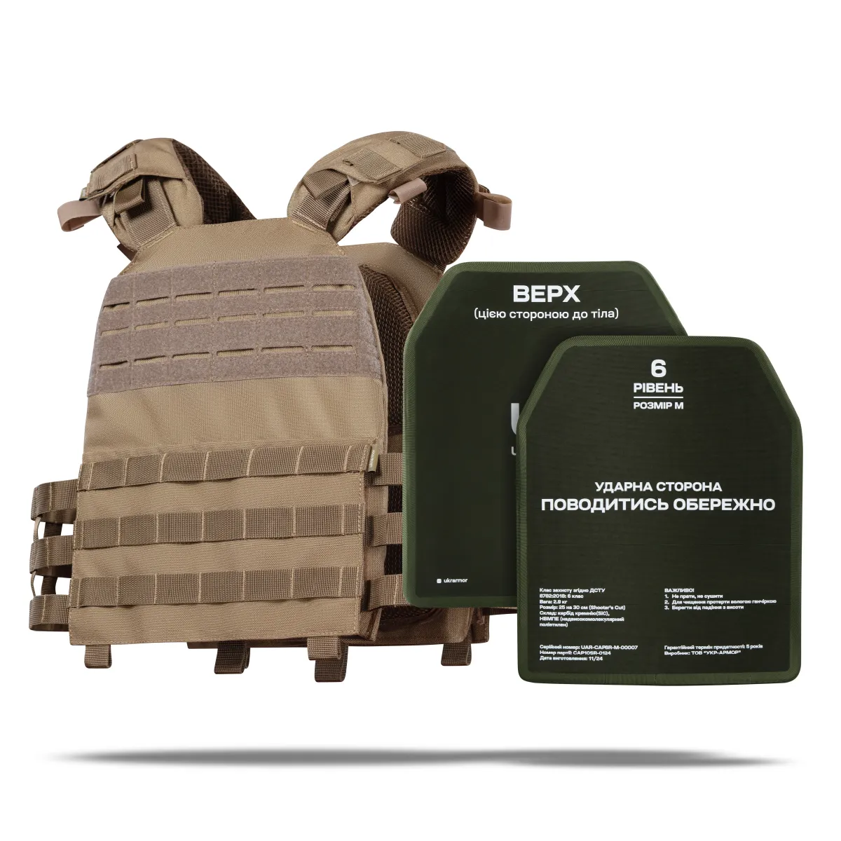 - 2 бронеплиты 6-го класса (вес 2.9 кг, материал керамика карбид кремния SiC);