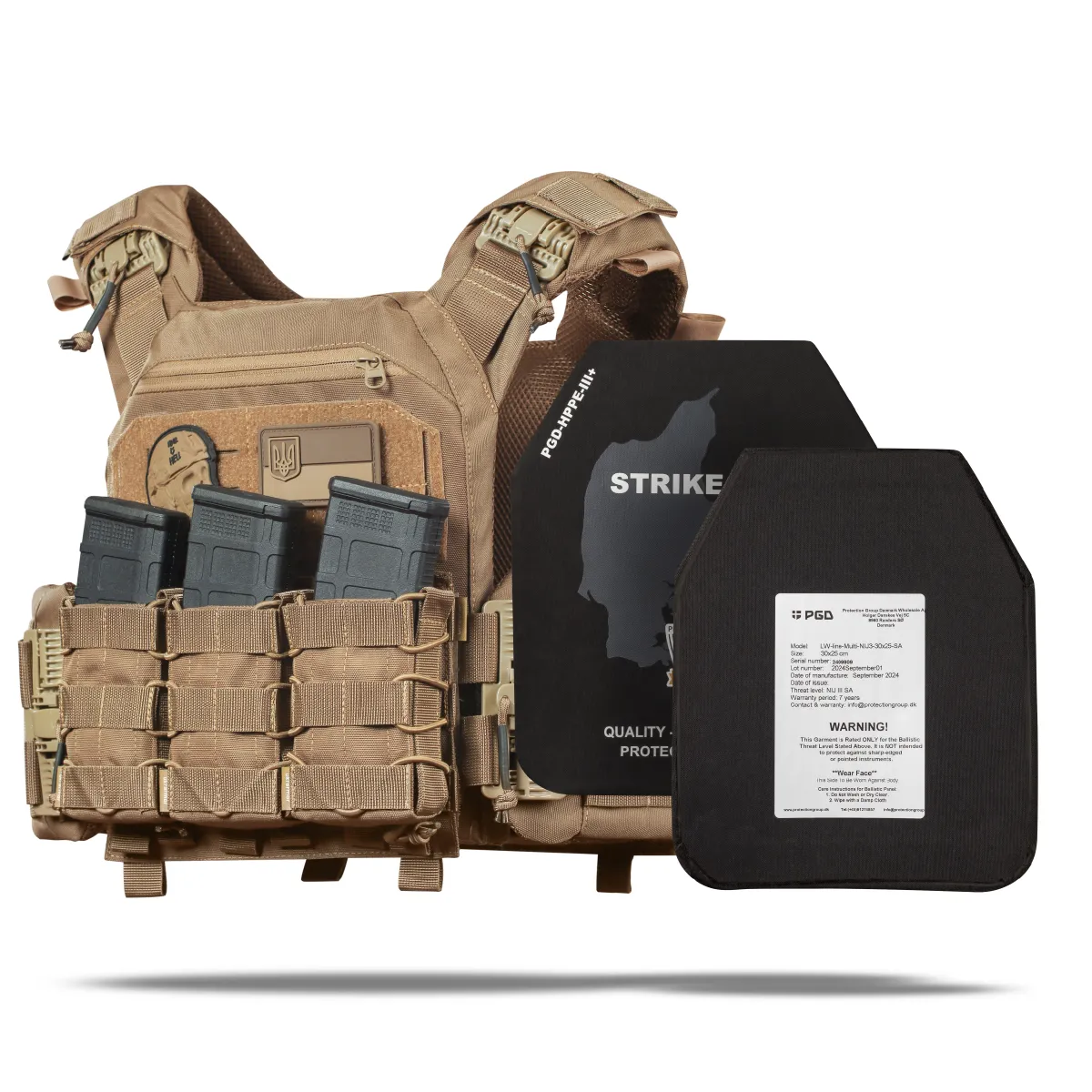 Бронепластины изготавливаются датской компанией Protection Group Denmark по самым высоким стандартам качества и только из сертифицированного НВМПЭ от Honeywell и Dyneema®.