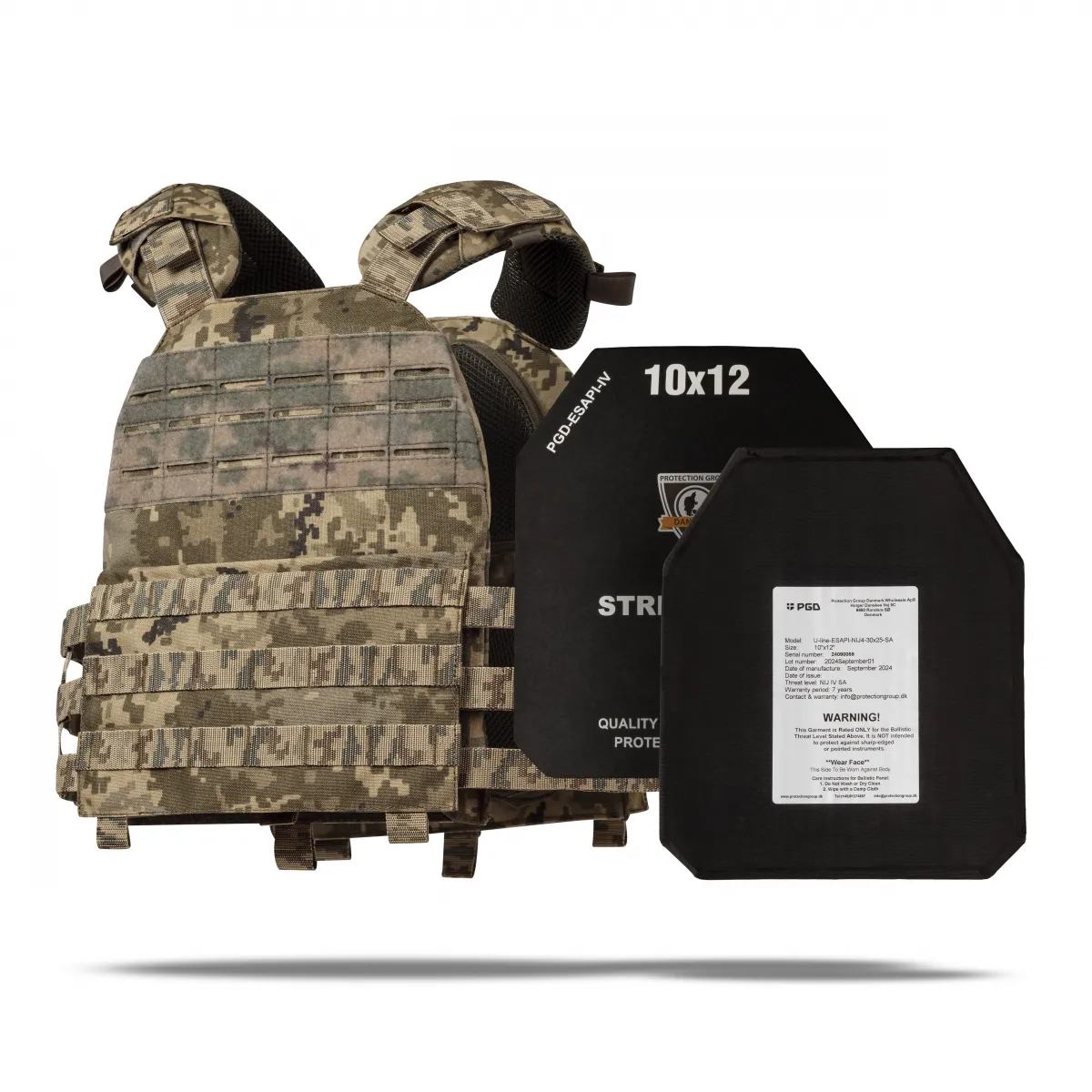 - Комплектация 2 бронеплиты (материал керамика карбид кремния SiC), плитоноска M.V.P., копия протокола отстрела