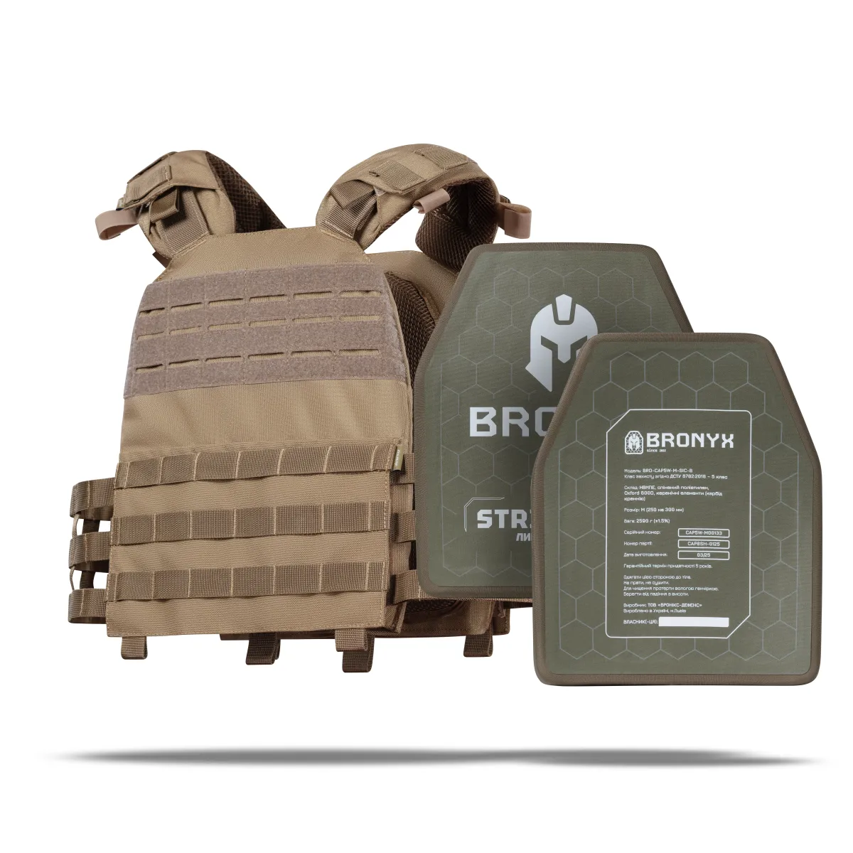 - 2 бронеплиты 5 класса Bronyx (вес 2.59 кг, материал керамика карбид кремния (SiC);