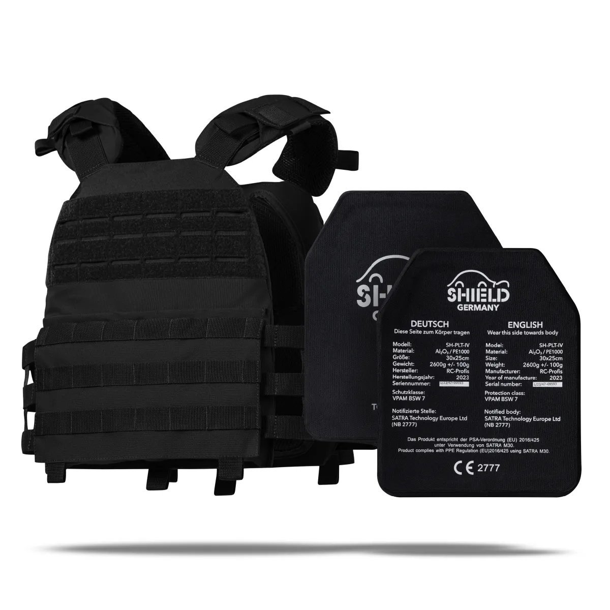 - 2 бронеплиты 6-го класса Shield Germany® SK4 (вес 2.65 кг, материал керамика алюминий оксид Al₂O₃);