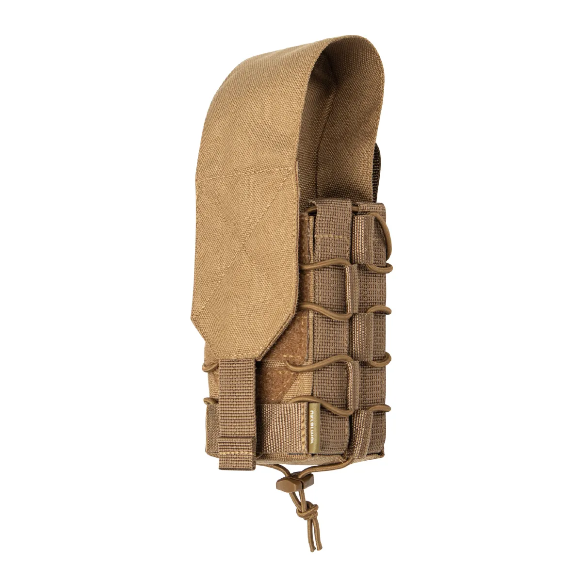 Крышка-клапан регулируется по высоте и может быть закреплена на задней части изделия или полностью удалена. Нейлоновые стропы по бокам гарантируют тихое и легкое извлечение магазинов, а система MOLLE позволяет его зафиксировать на плитоноске или других разгрузочных модулях.
