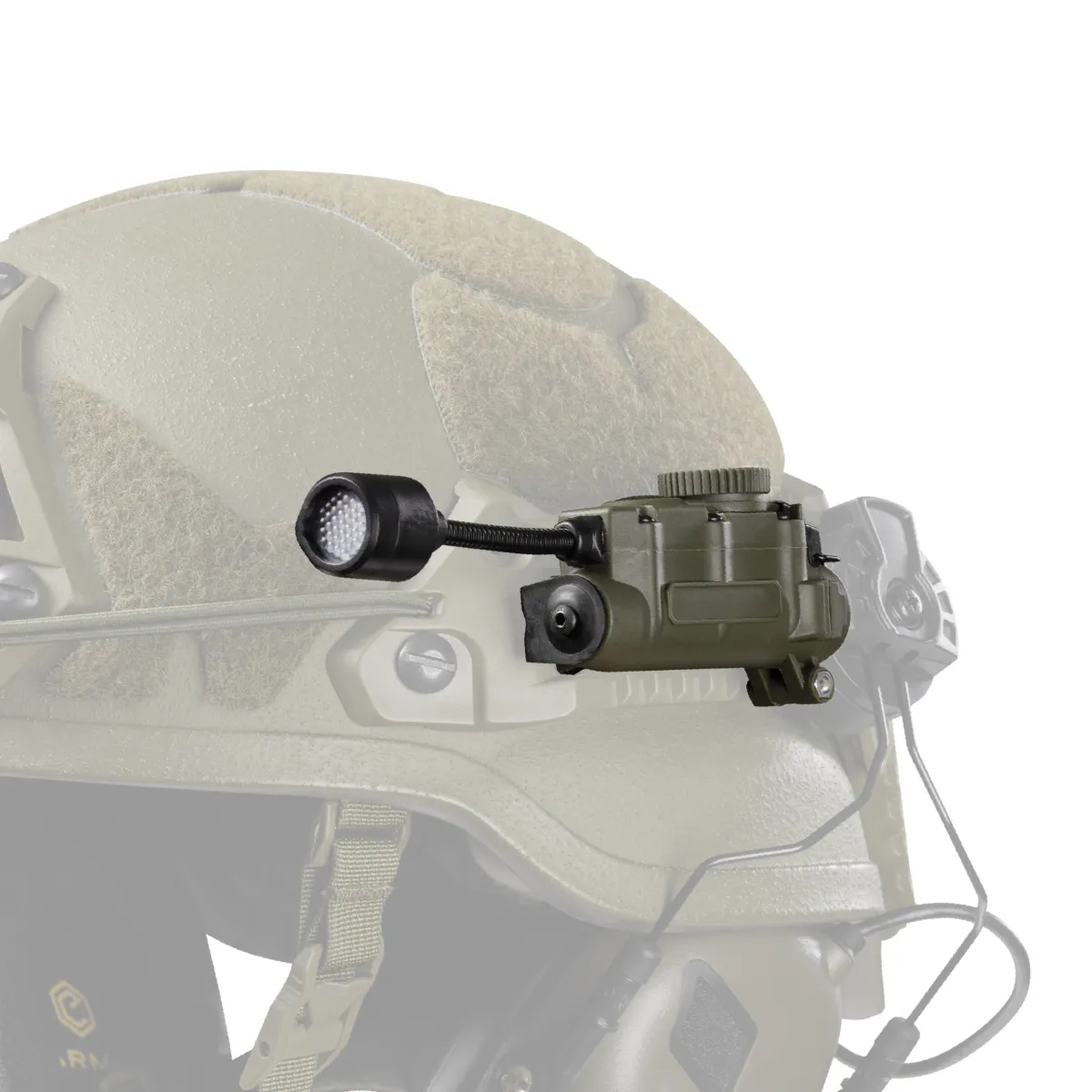 Мощный, компактный и надежный аксессуар для освещения с боковым креплением MPLS на шлемы с рельсами ARC или другой амуницией. Количество светодиодов: 5 (белый, красный, зеленый, синий и ИК).
