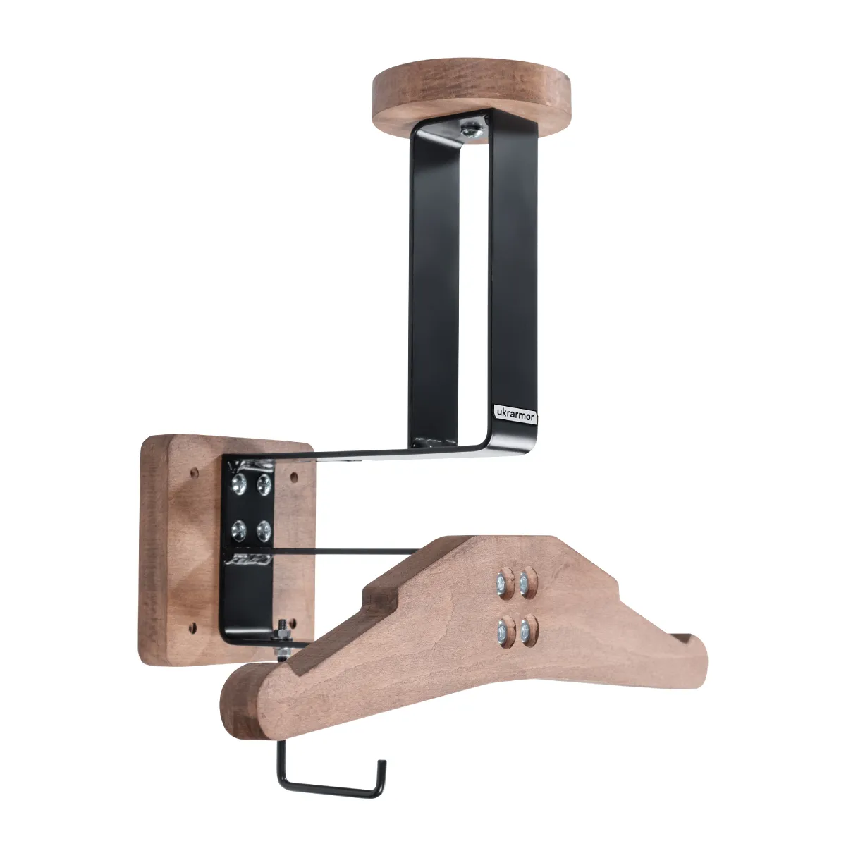 Прочный, надежный крепеж с металлическим каркасом и деревянными держателями из бука позволяет удобно разместить вашу амуницию весом до 40 кг занимая минимум места в помещении.