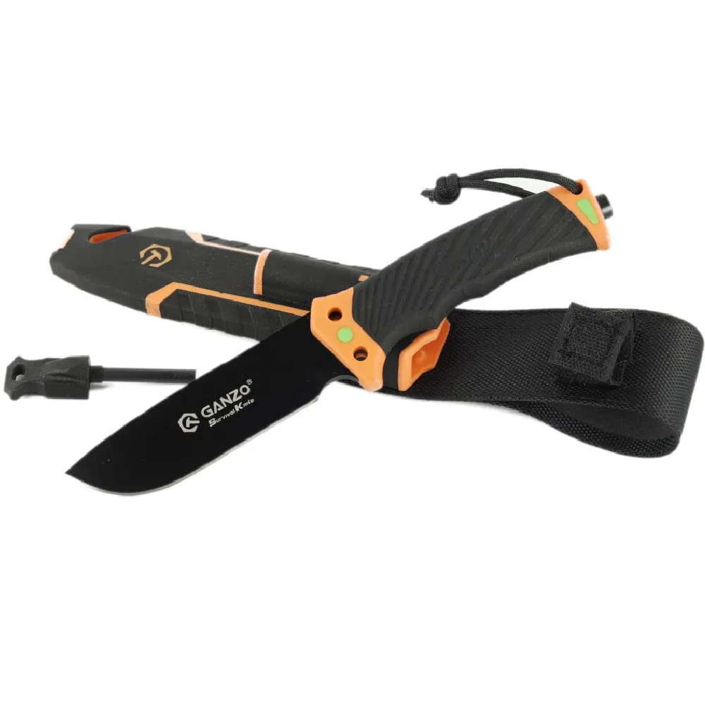Нож Ganzo G8012V2 оранжевый с паракордом и кресалом. Углеродистая сталь