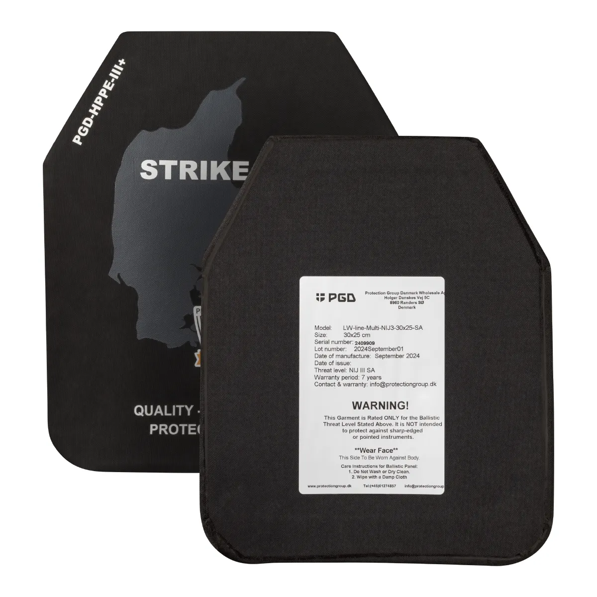 Бронеплиты изготавливаются датской компанией Protection Group Denmark по самым высоким стандартам качества и только из сертифицированного СВМПЭ от Honeywell и Dyneema®.