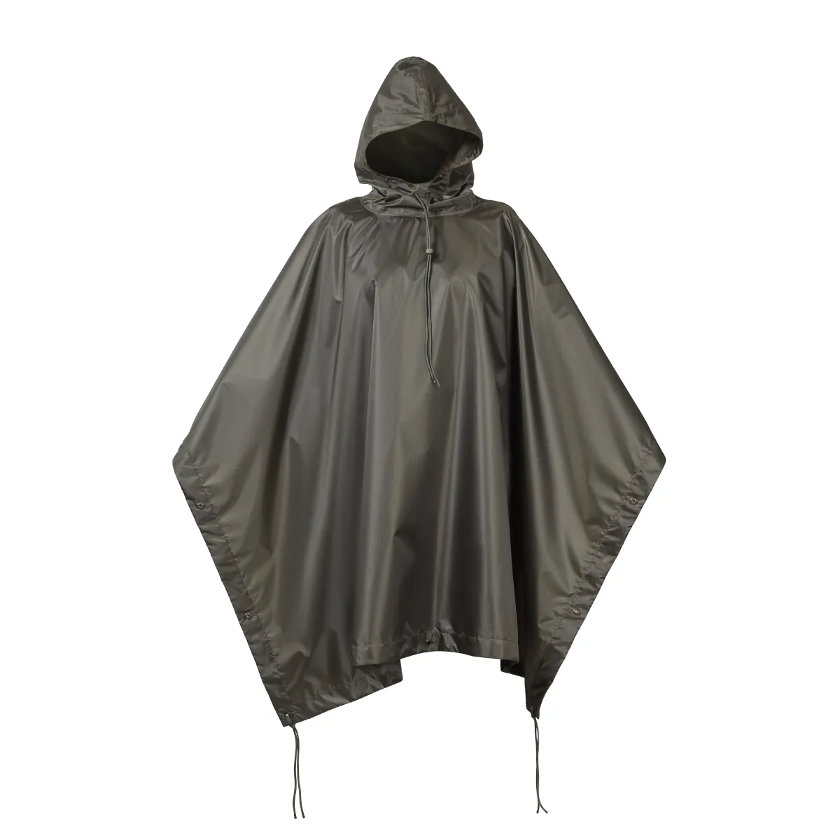 Легкое и влагостойкое защитное пончо, изготовленное по спецификации военно-полевой одежды армии США. Функциональный элемент снаряжения можно использовать как защиту от ветра, дождя, а благодаря универсальной форме пошива его можно одевать даже поверх зимней одежды или баула с вещами, также может применяться как небольшая палатка.