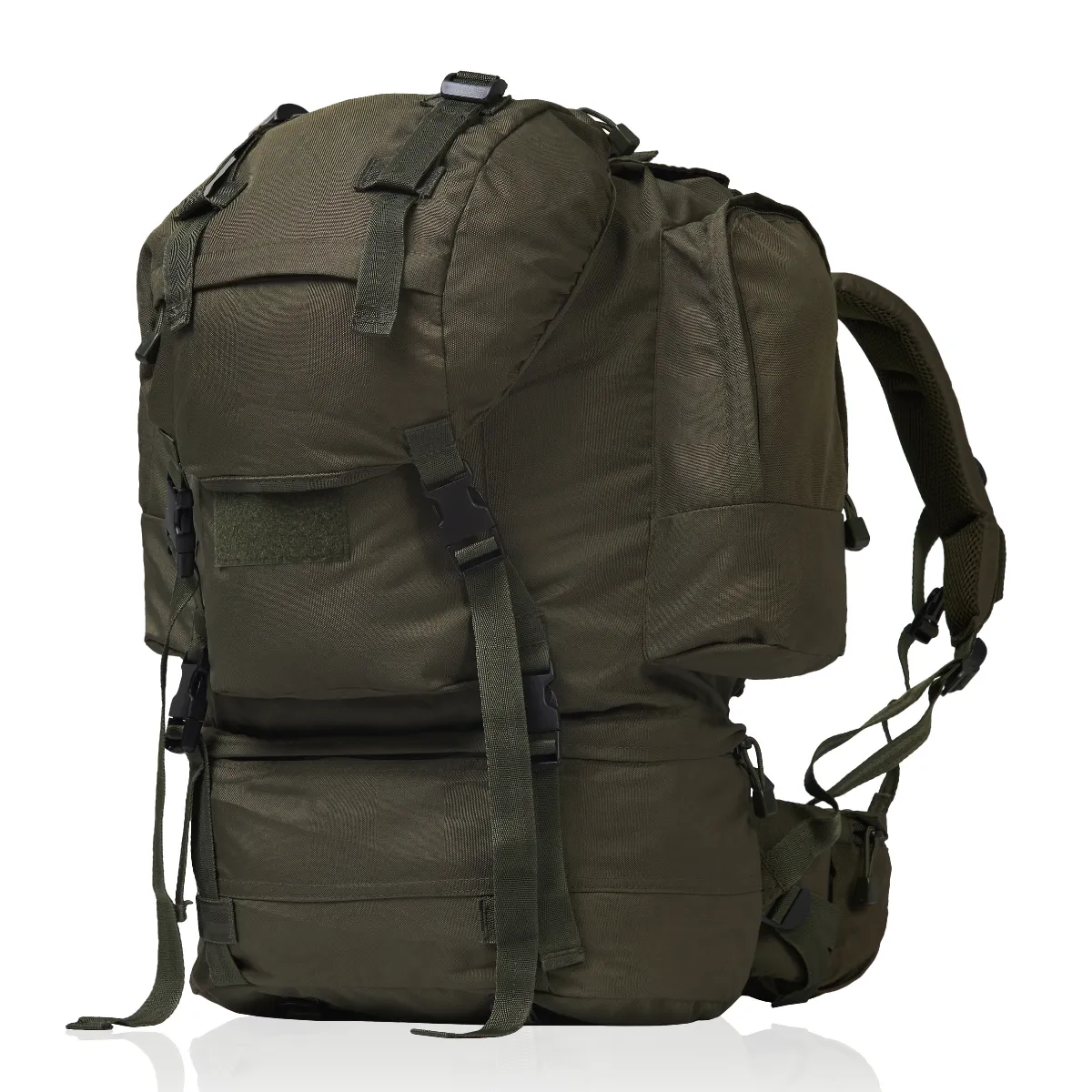 Как и большинство военных, туристических и классических рюкзаков он имеет нижнее отделение для спального мешка и/или обуви. Три внешних кармана на молнии (центральный и два по бокам).