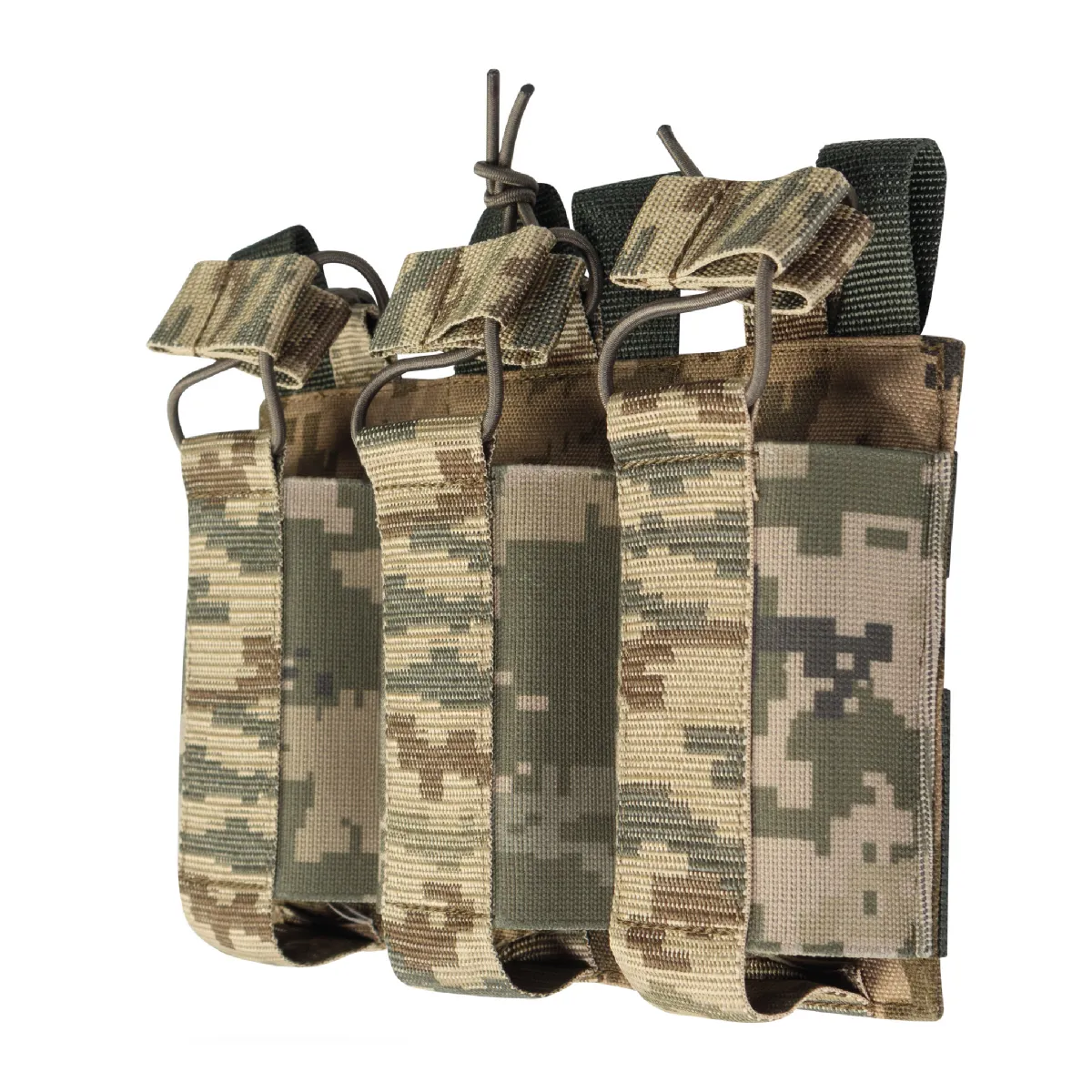 Тройной эластичный подсумок для магазинов АК/АR открытого типа с креплением MOLLE. Пиксель (мм-14)